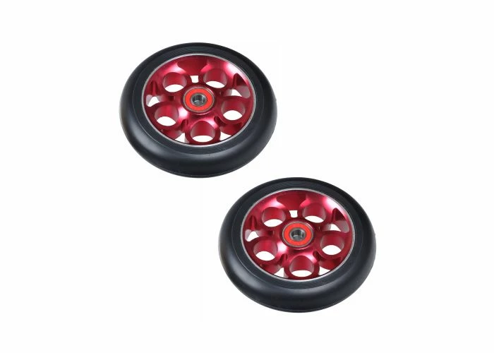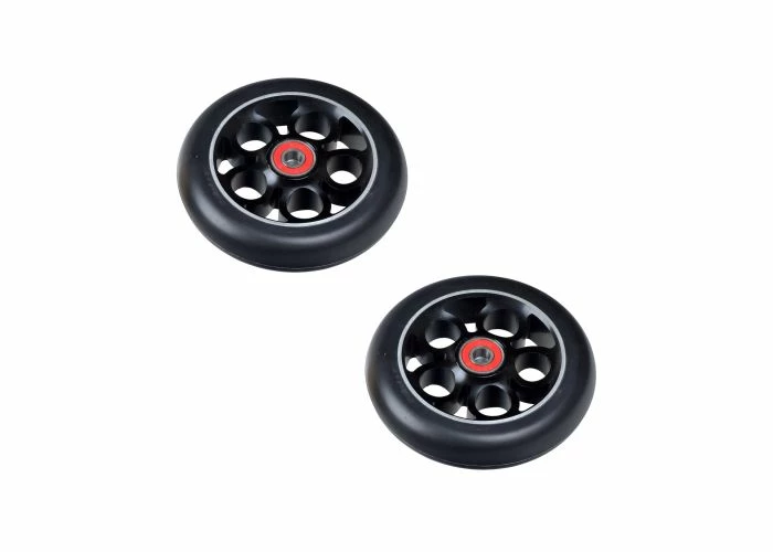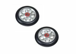 These wheels feature heavy duty rubber and a stylish 5-clover hub, made of a strong metal alloy. Perfect if you need something heavier than the more common aluminum pro scooter wheels on the market. With multiple color options available, you are free to customize your ride to fit your style.