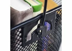 The basket quickly and easily attaches to the clamp and with a press of the button can be removed and carried along with the handy loop handle.