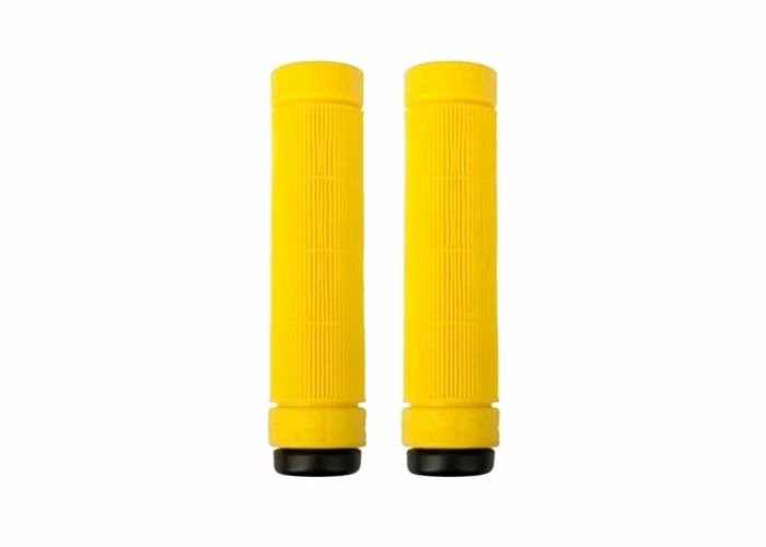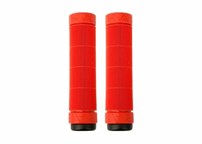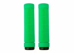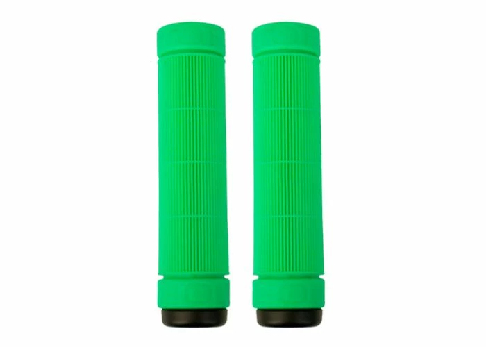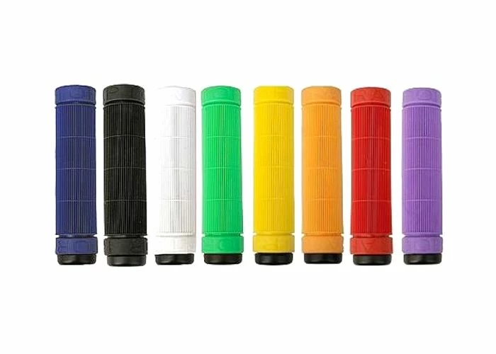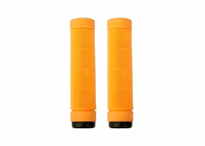 So what makes these Raptor Scale grips so great? Durability and pure “grippiness” in your hand. Common BMX style grips often give out in a few weeks, but the Raptor Scale’s additional 1.5 mm of wall thickness (about 50% more than traditional grips) means that there is a lot more there between your hands and the steel bar. That’s a lot more shock absorbing too. The Raptor Scale come with screwable Nylon end plugs to keep the fit snug and textured horizontal ribs to fit your hands like they were part of your body.